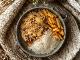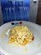 Pão francês com maionese, carne seca desfiada, cebola, rúcula e requeijão.