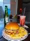 Pão de brioche com maionese, carne de hambúrguer, muçarela.